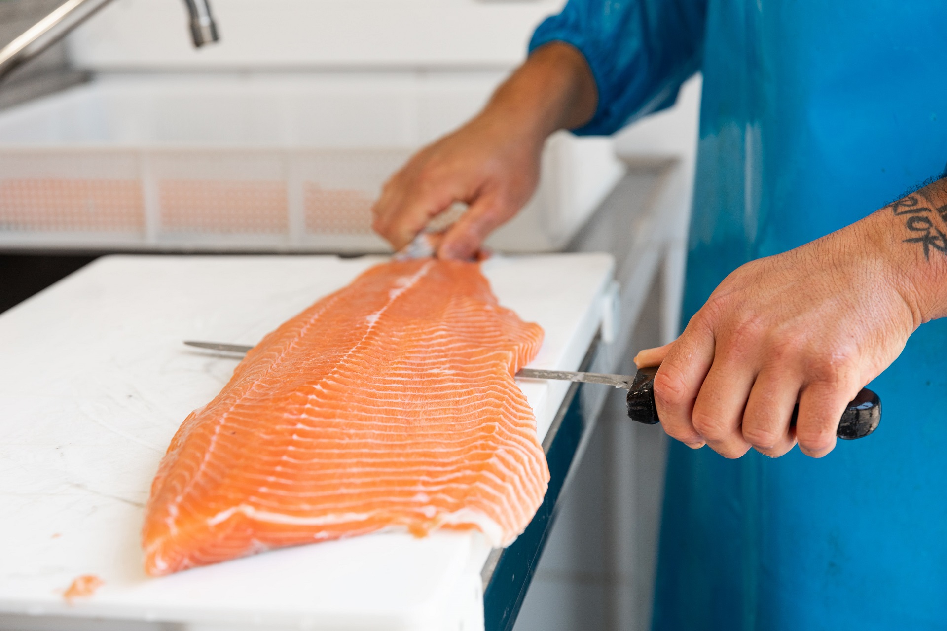 To understand if the salmon is good, do the finger test: press on a part of the salmon with your index and if the fingerprint should go back with elasticity and the conformation of the salmon returns to normal, you will have a great quality salmon. If the fingerprint remains impressed as a bas-relief, that piece of salmon is not good.