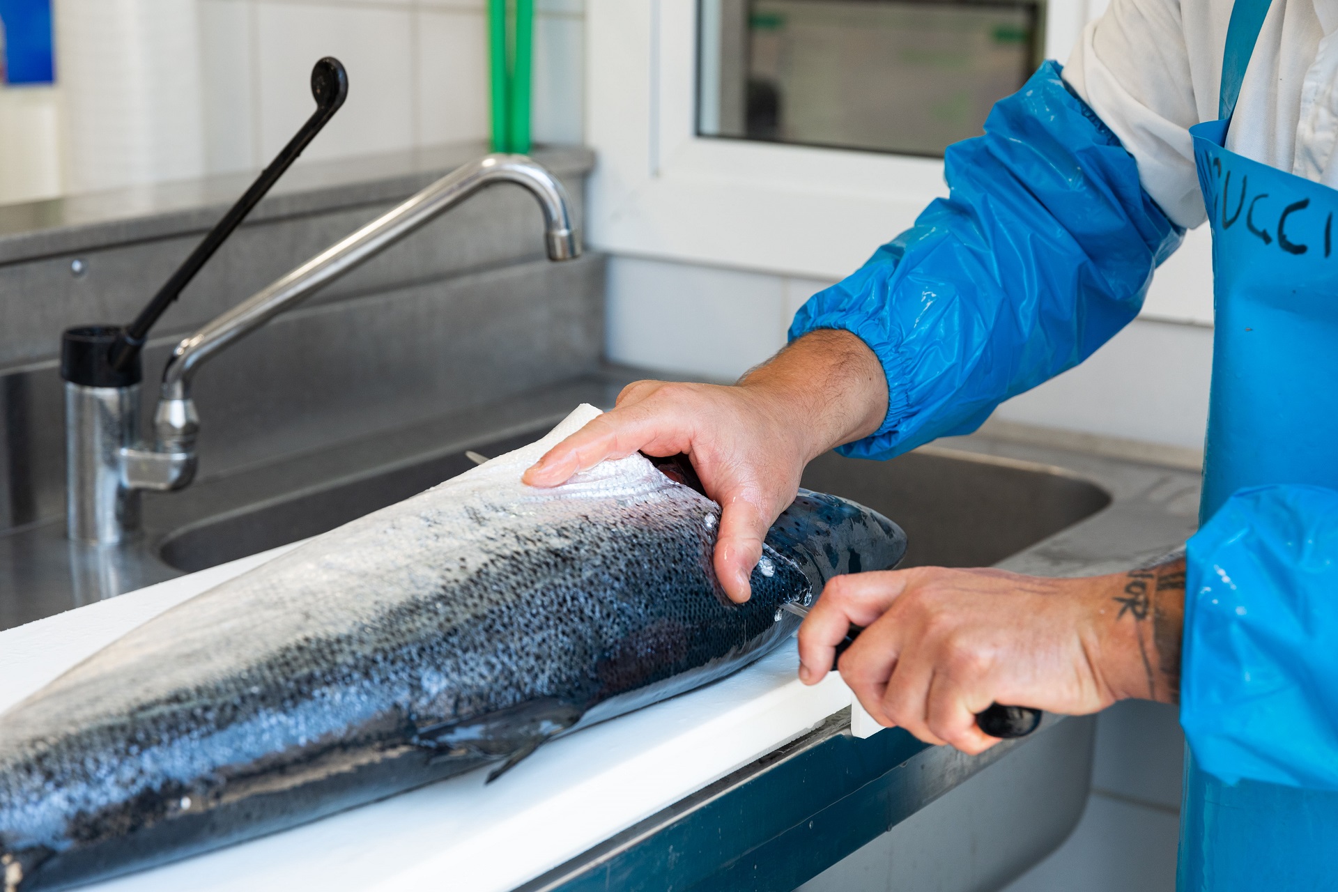 - cold-smoked salmon: the salmon filets are placed into wooden containers, covered with salt and sugar, where they macerate and rest for 12 hours at 20°C undergoing constant smoking;
