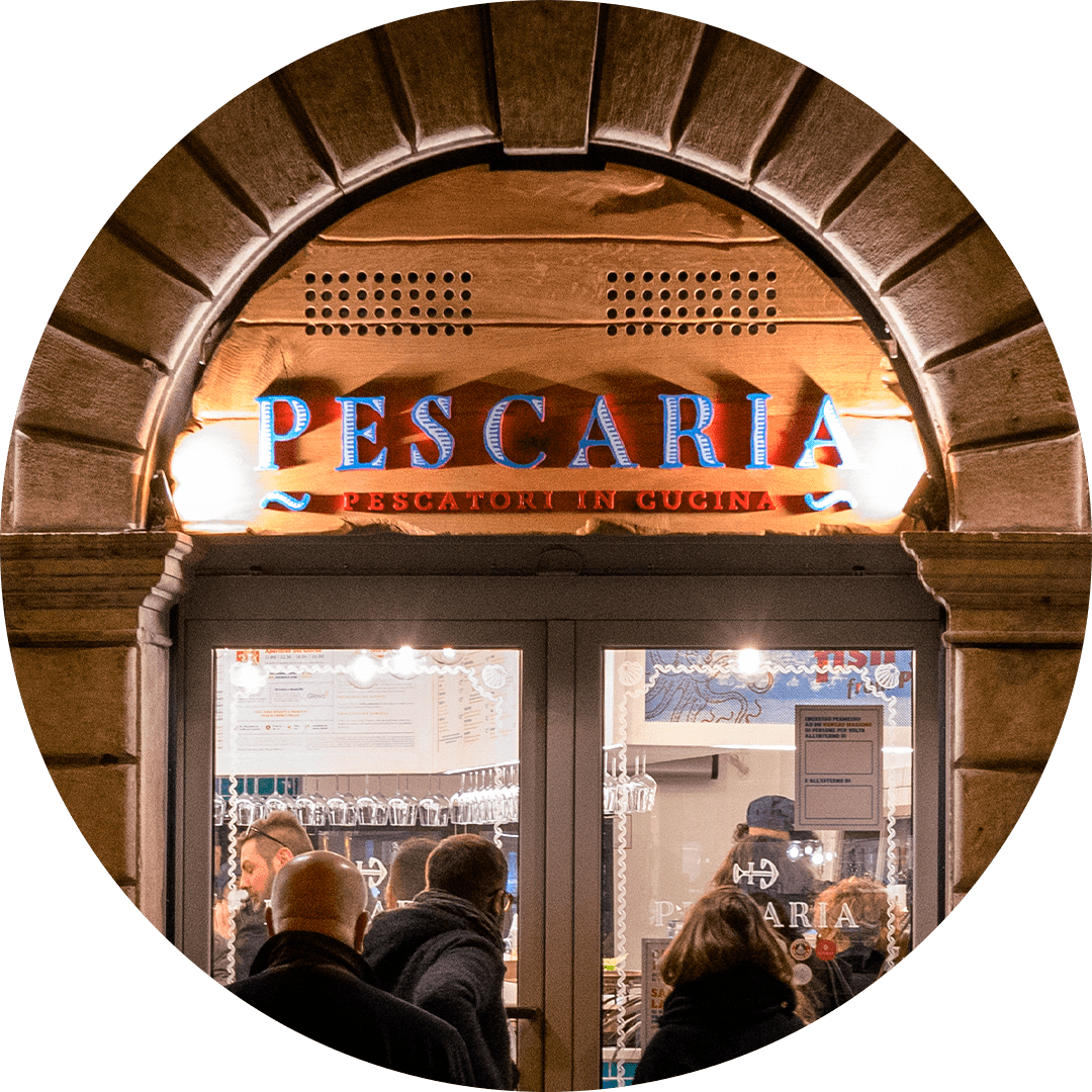 “Facciamo qualcosa di diverso! Facciamo un fast food di pesce”. Le idee furono tantissime e il cerchio brevemente si chiuse attorno a un’idea: Pescaria, pescatori in cucina.
