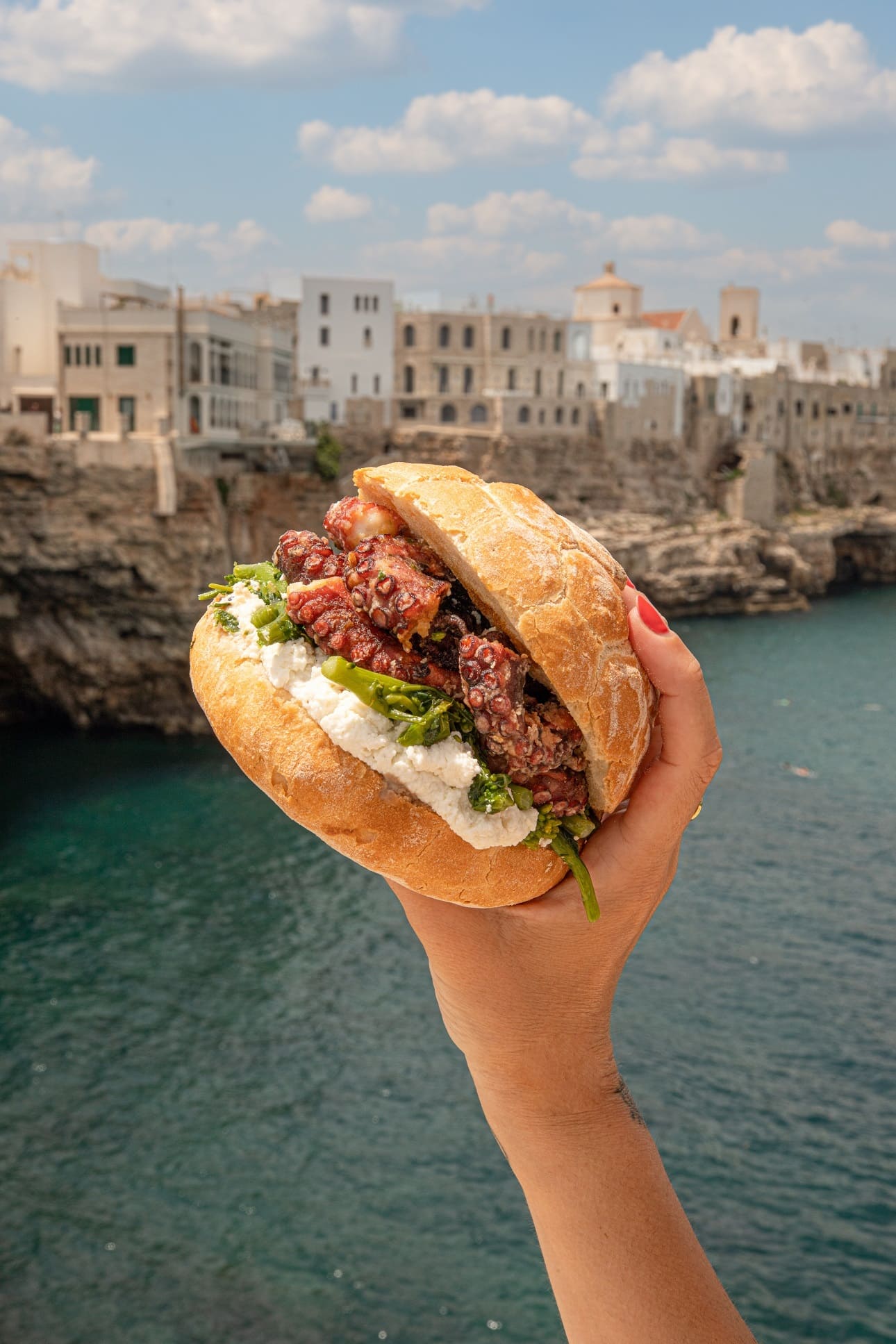 Il panino con il polpo fritto è un best seller del menù di Pescaria, nonché il primo panino assaggiato quando abbiamo aperto. Se vuoi assaggiarlo, ordinalo con Glovo (a domicilio), oppure ordina il ritiro dal punto vendita, o vieni a trovarci nei nostri ristoranti: siamo a Polignano, Trani (Puglia), Milano (via Solari e via Bonnet), Torino, Bologna, Roma, Napoli, Verona, Trento, Padova.