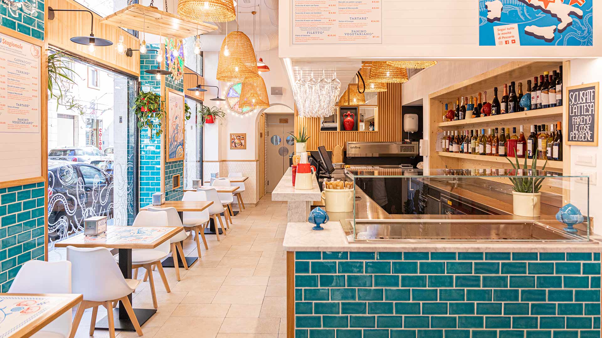 Erano pochissimi metri per qualunque ristorante. Tranne per quello che avevano in mente loro. Il passo fu breve: presto buttarono il cuore oltre l’ostacolo e si misero a costruire la loro idea di fast fish food. Adesso serviva un nome, che arrivò in modo bizzarro: con la partecipazione di oltre 300 persone su Facebook. Le idee furono tantissime e il cerchio brevemente si chiuse attorno a un’idea: Pescaria, pescatori in cucina.